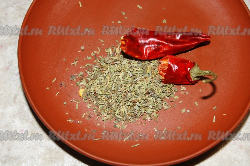 Для маринада взять кастрюлю, вылить в нее уксус и воду, добавить соль, сахар, сухой острый перец, сушеный тимьян, довести маринад до кипения и сразу выключить.