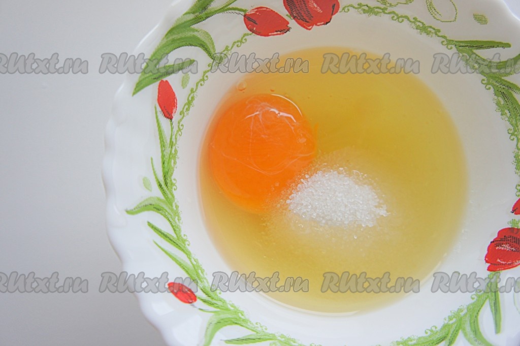 Яйцо растереть с сахаром и солью.
