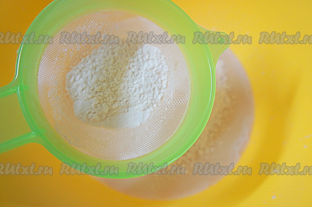 Небольшими порциями, как на фото, добавить просеянную муку.