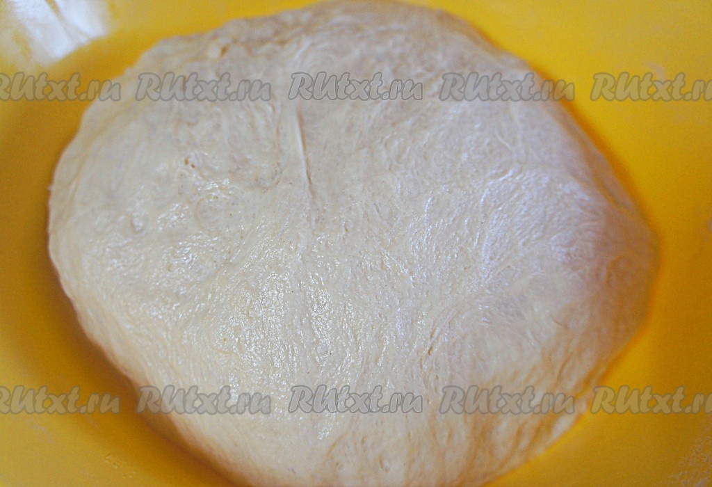 После того как безопарное дрожжевое тесто поднялось, его нужно ещё раз обмять, накрыть полотенцем и снова убрать в тёплое место, чтобы оно поднялось ещё раз. Так оно будет более пышное.
