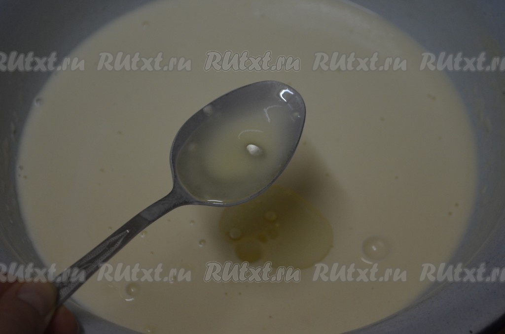 Затем добавить 2 столовых ложки растительного масла, ещё раз перемешать.