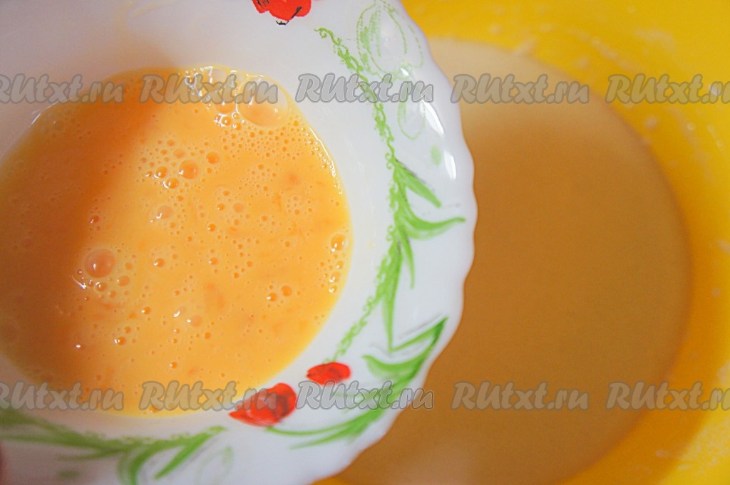 Яйцо хорошо взбить вилкой в отдельной миске. Добавить в тесто яйцо и тщательно перемешать.