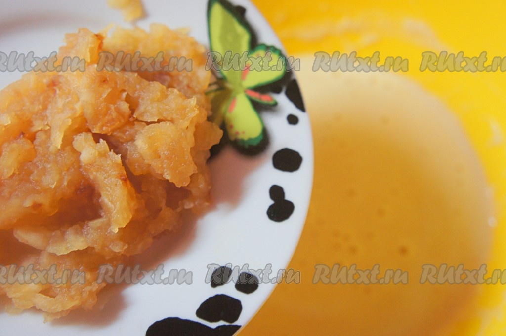 Добавить в тесто подготовленные заранее яблоки. Перемешать.
