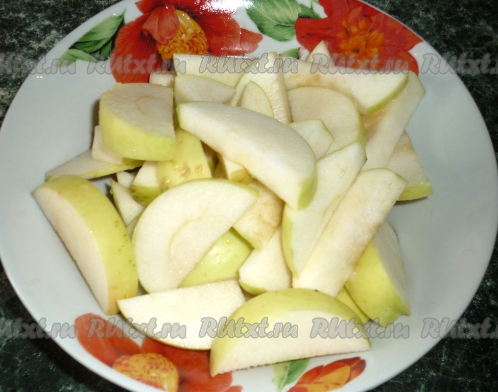 Затем яблоки нарезать на кусочки, удаляя сердцевину с косточками.