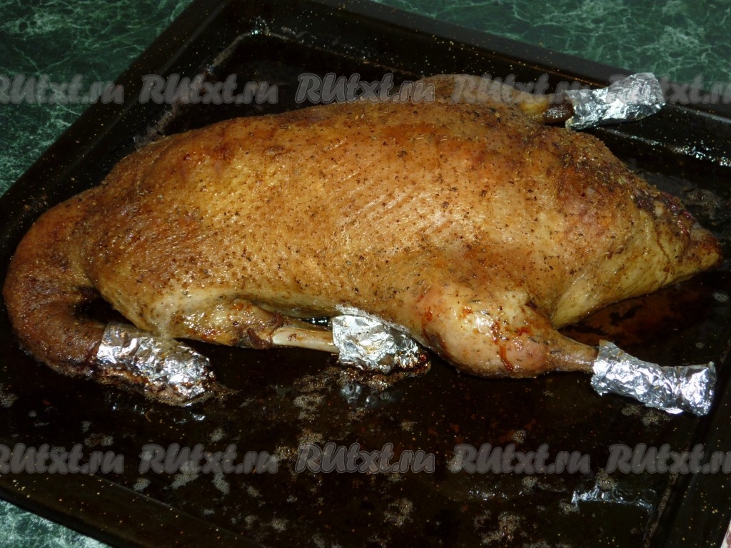 После того как утка с яблоками запечётся в течение 40-50 минут, достаём её из духовки.