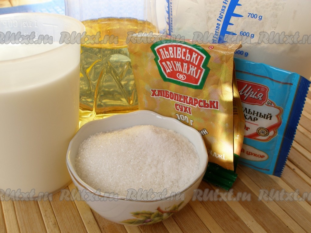 В контейнер хлебопечки влить теплое молоко, добавить соль, сахар, ванильный сахар, растительное масло. Затем всыпать муку и дрожжи. Установить контейнер в хлебопечку, выбрать режим "дрожжевое тесто", включить.
