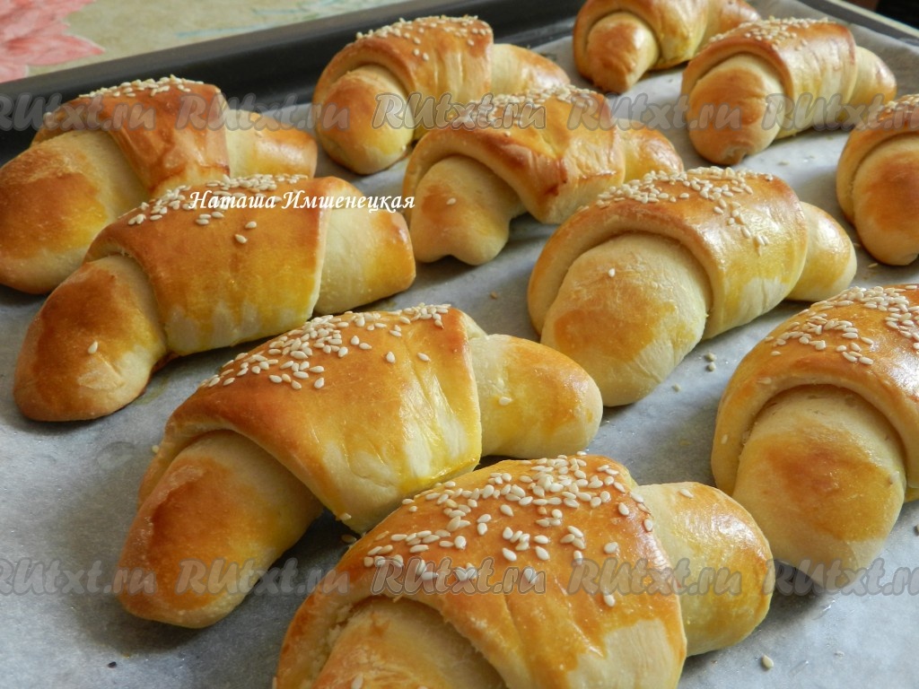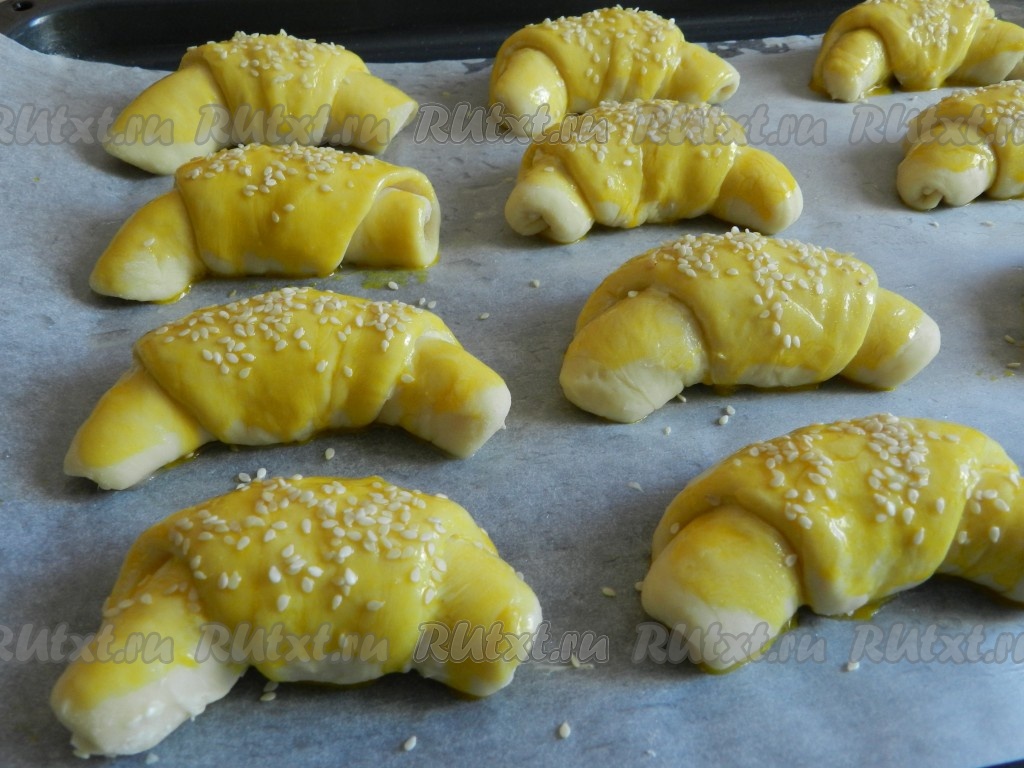 Выпекать рогалики из дрожжевого теста при 180 градусах 25-30 минут.