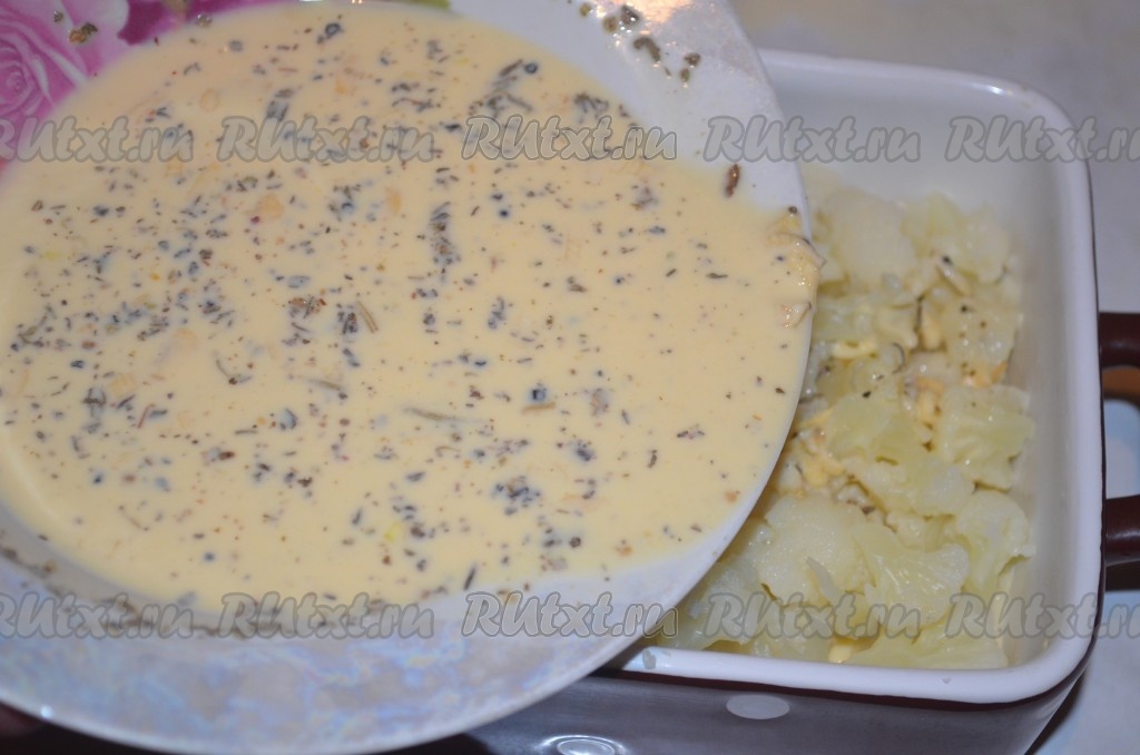 Залить цветную капусту сливками.