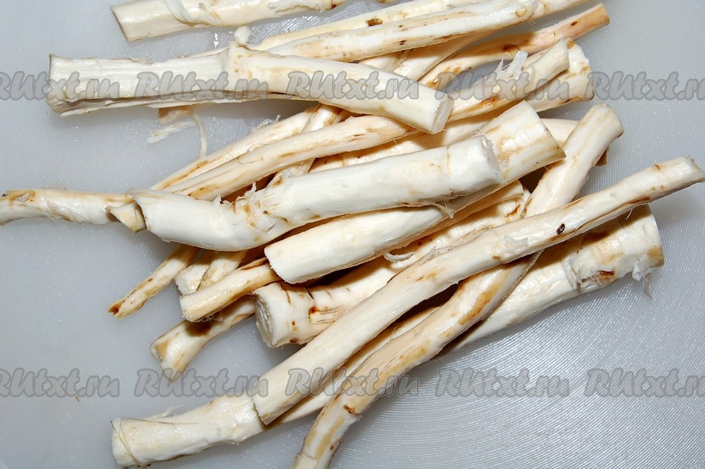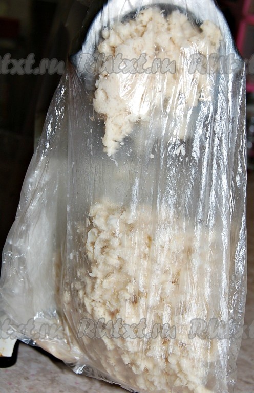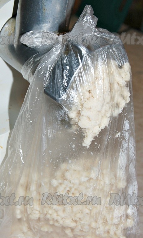 Теперь пропустить через мясорубку все подготовленные овощи. Чтобы промолоть корни хрена, нужно (желательно!) на мясорубку надеть полиэтиленовый пакет, завязать его крепко, чтобы не оставалось щелей. Промолотый хрен будет падать в пакет, что убережет ваши глаза и нос от сильного жжения.