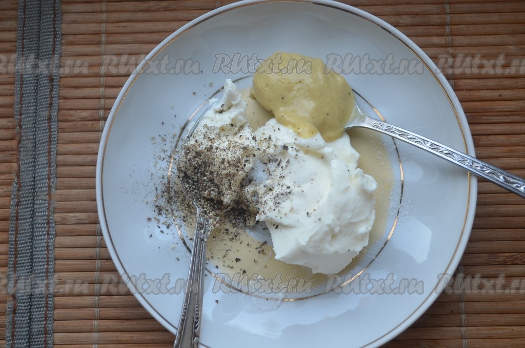 Сливочный сыр растереть с горчицей, посолить и поперчить по вкусу. Горчица придаст закуске пикантный вкус.