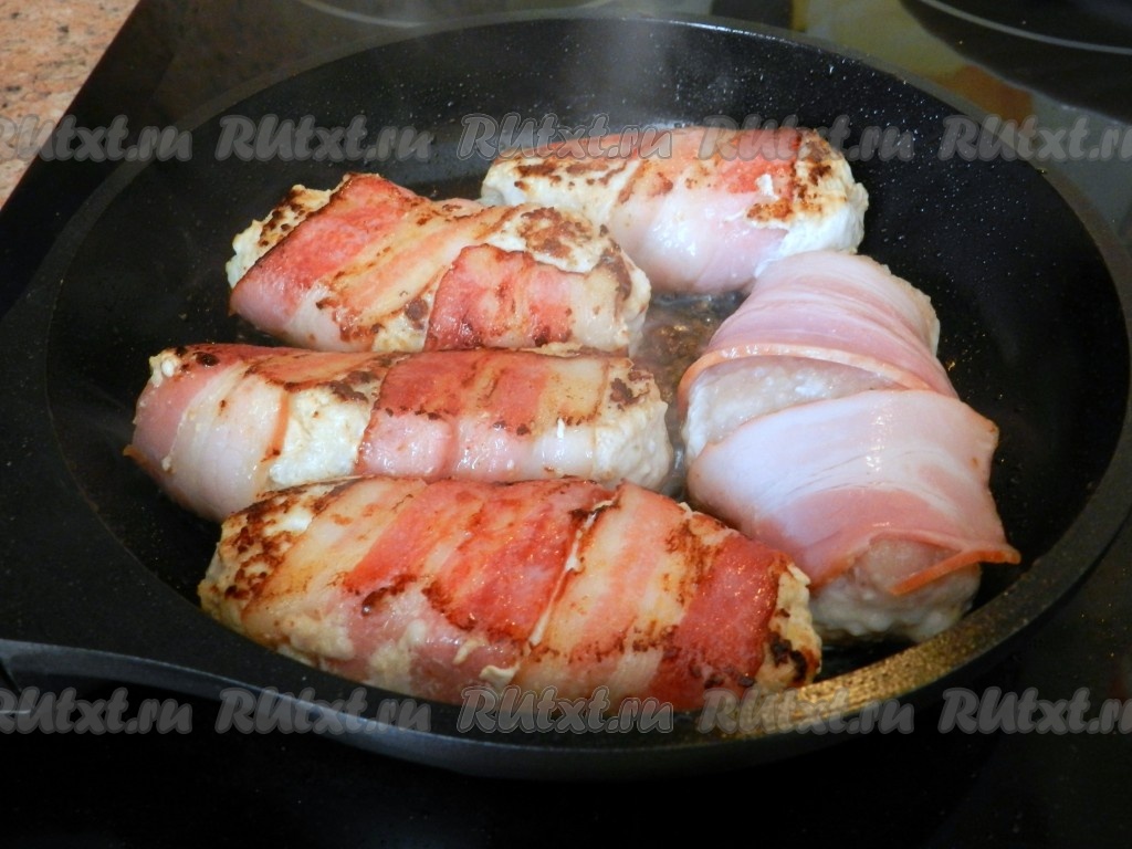 Куриные котлеты в беконе на сковороде