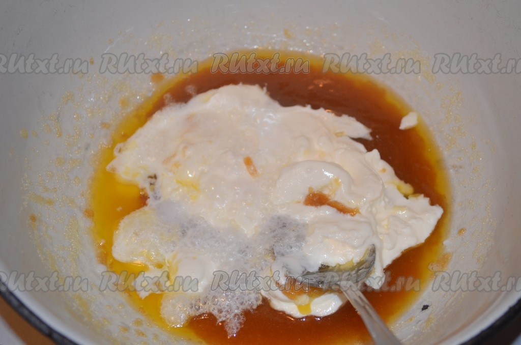 Соду погасить уксусом или лимонным соком, добавить со сметаной в миску.