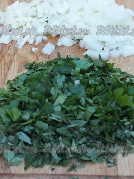 1. Лук, чеснок и зелень порубить.