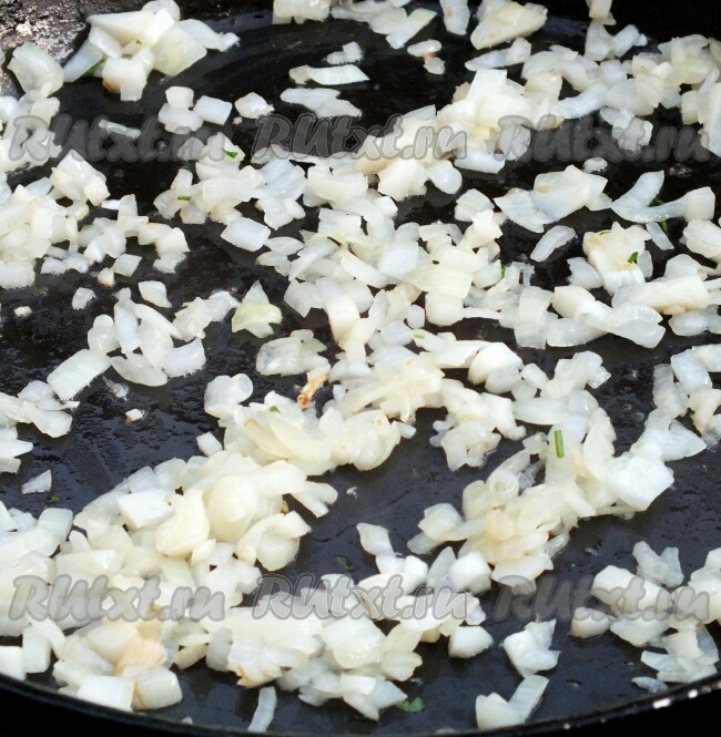 2. Обжарить лук и чеснок на среднем огне до мягкости на 2 столовых ложках оливкового масла.