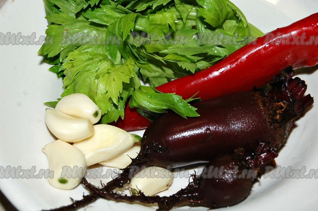 Приготовим свеклу, петрушку, перец и чеснок.