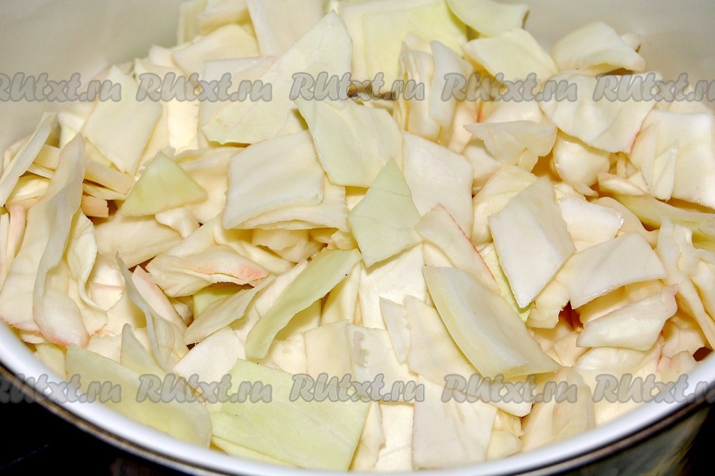 Нарежем капусту небольшими квадратиками.