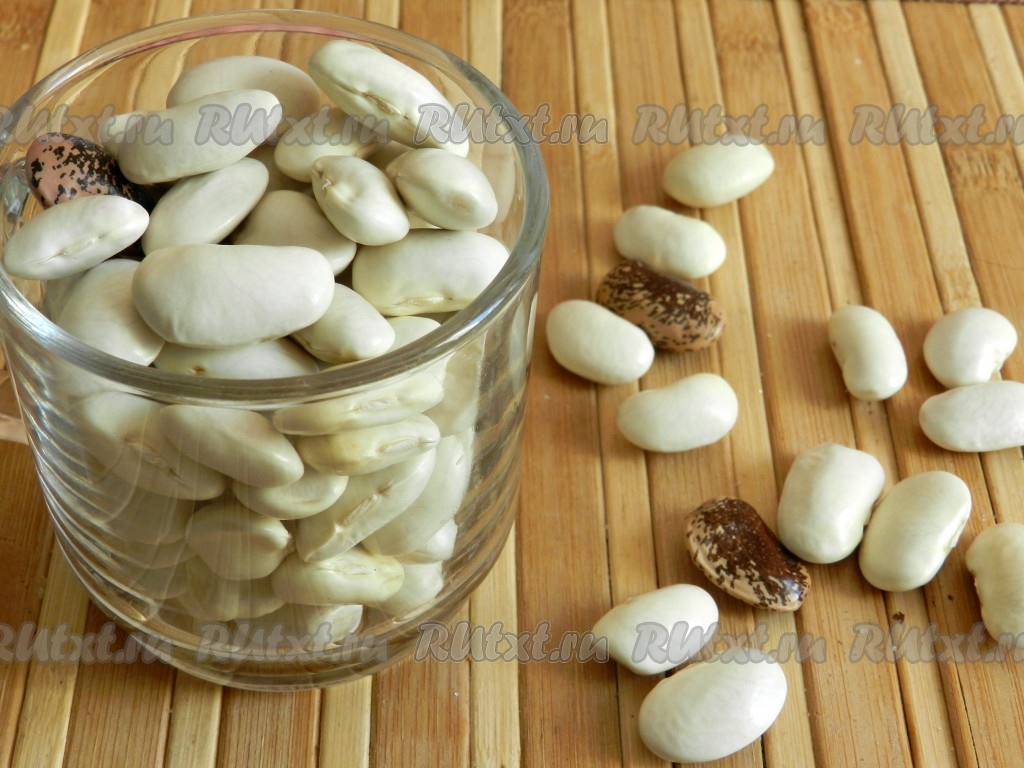 Сухую фасоль промыть водой, выложить в глубокую миску, залить холодной водой (я стараюсь, чтобы воды было в 3 раза больше, чем фасоли) и оставить на ночь.