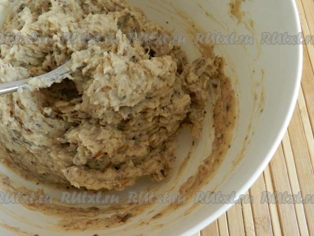 Если нужно, досолить фасолевый паштет с грибами, поперчить, перемешать.