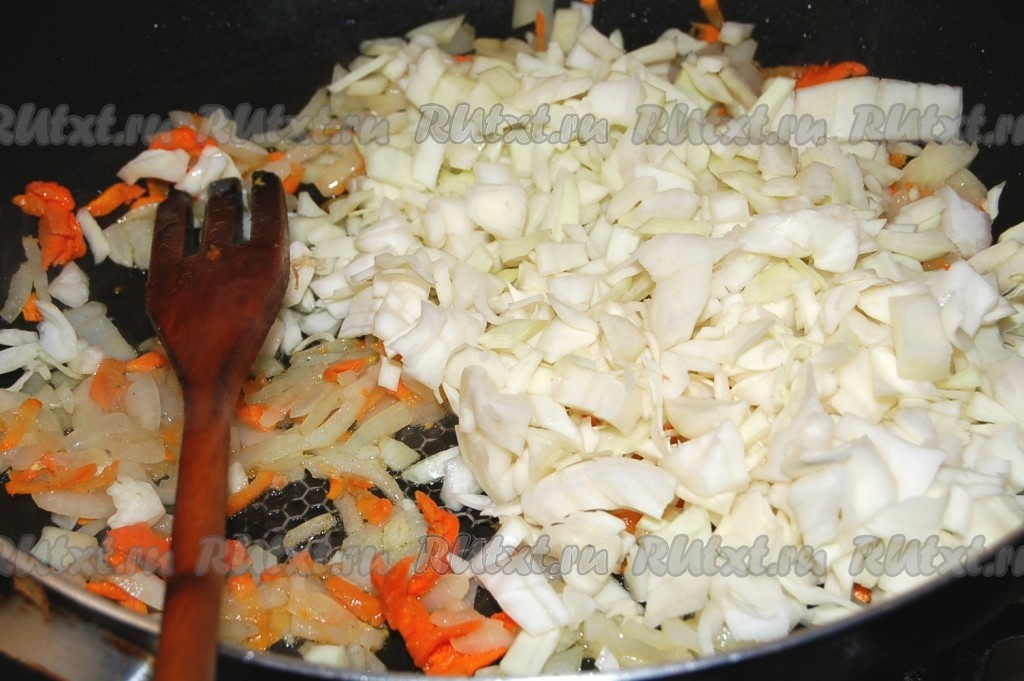 Затем добавить мелко нарезанную капусту.