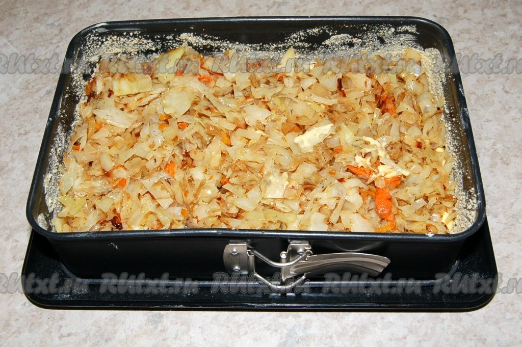 На капусту выложить оставшееся тесто.
