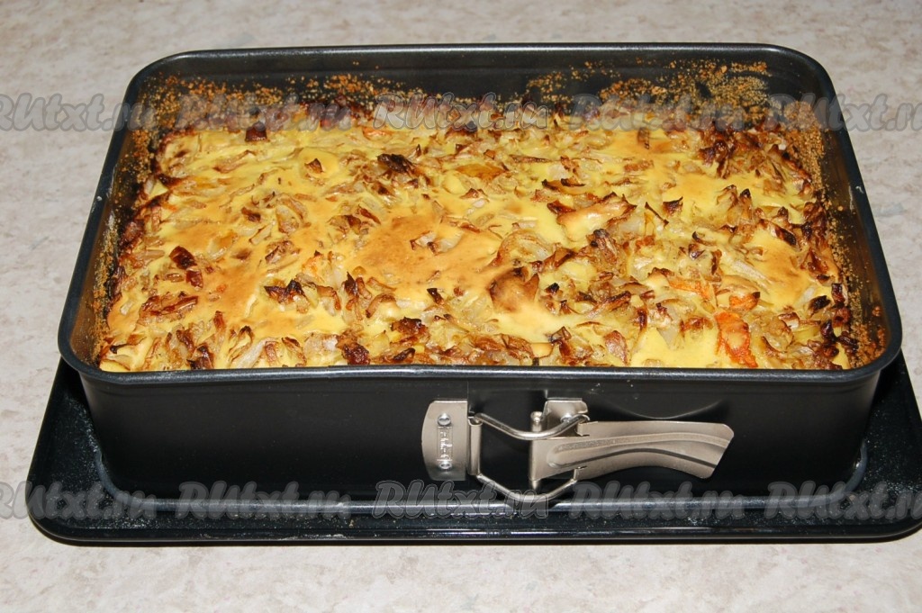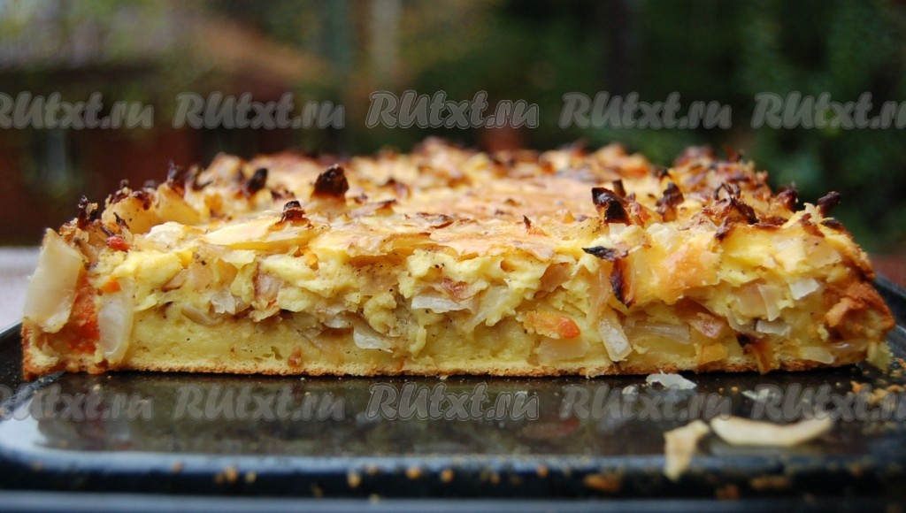 Отправить форму с капустным пирогом в заранее нагретую до 180 градусов духовку на 35-40 минут.