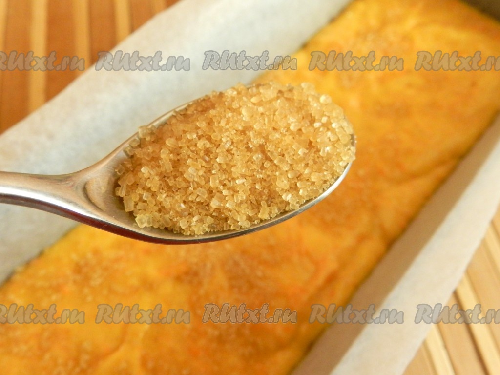 Сверху присыпать коричневым сахаром. Выпекать кекс из тыквы с мёдом в разогретой духовке при температуре 180 градусов 50-60 минут (до золотистого цвета). Готовность проверить деревянной палочкой (если при прокалывании кекса деревянная палочка остаётся сухой, значит пришло время вынимать выпечку из духовки).