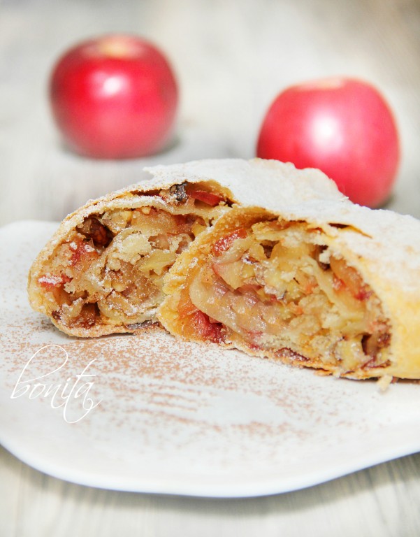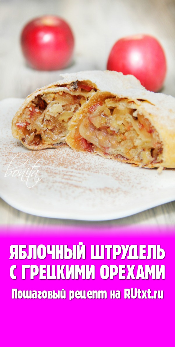 Долго думала над приготовлением яблочного штруделя. То не было времени, то желания, а чаще всего я боялась браться за его приготовление. Процесс мне казался очень трудоёмким, особенно раскатка самого теста! Так проходили дни в предвкушении и ожиданиях настроения. И тут случайно мне довелось попробовать необыкновенно вкусный яблочный штрудель в одном из кафе. Хорошенько распробовав и узнав рецепт у знакомого повара, я всё-таки решилась и на следующий день пошла за яблоками. Без капли страха и сомнения я приступила. Знаете, оказалась, что приготовить штрудель с тонким, хрустящим тестом и идеальной начинкой из яблок и грецких орехов совсем несложно. Прошло совсем немного времени, а яблочный штрудель по этому рецепту я пекла уже 4 раза. Надеюсь, ваши страхи развеются после этого пошагового рецепта и вы порадуете себя и своих близких наивкуснейшей выпечкой!