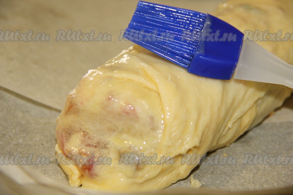 Смазываем его растопленным сливочным маслом.