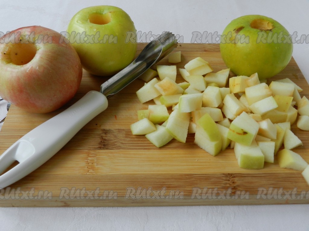 Яблоки вымыть, очистить от сердцевины и нарезать небольшими кубиками.