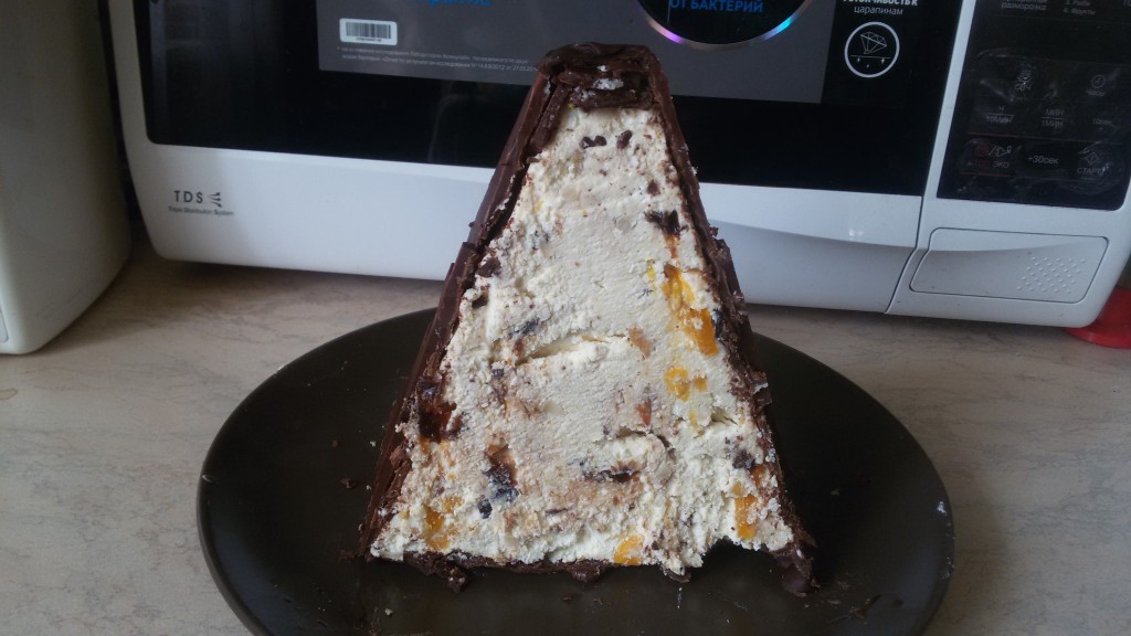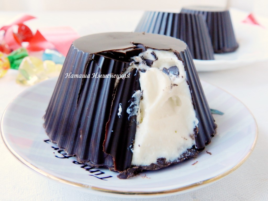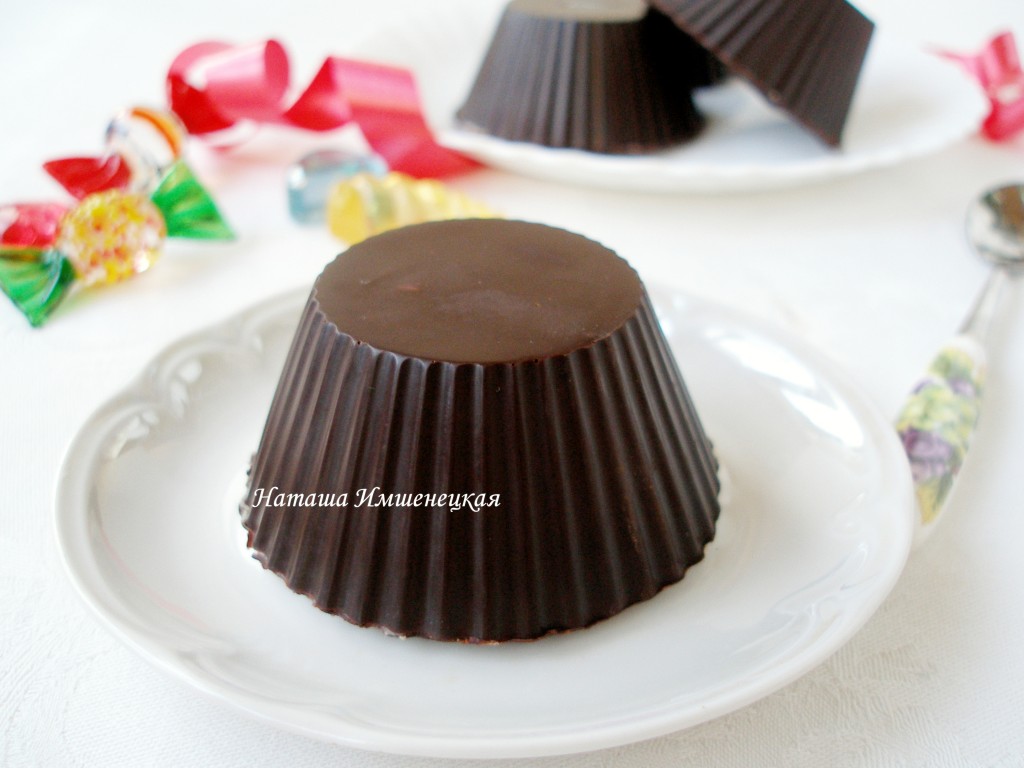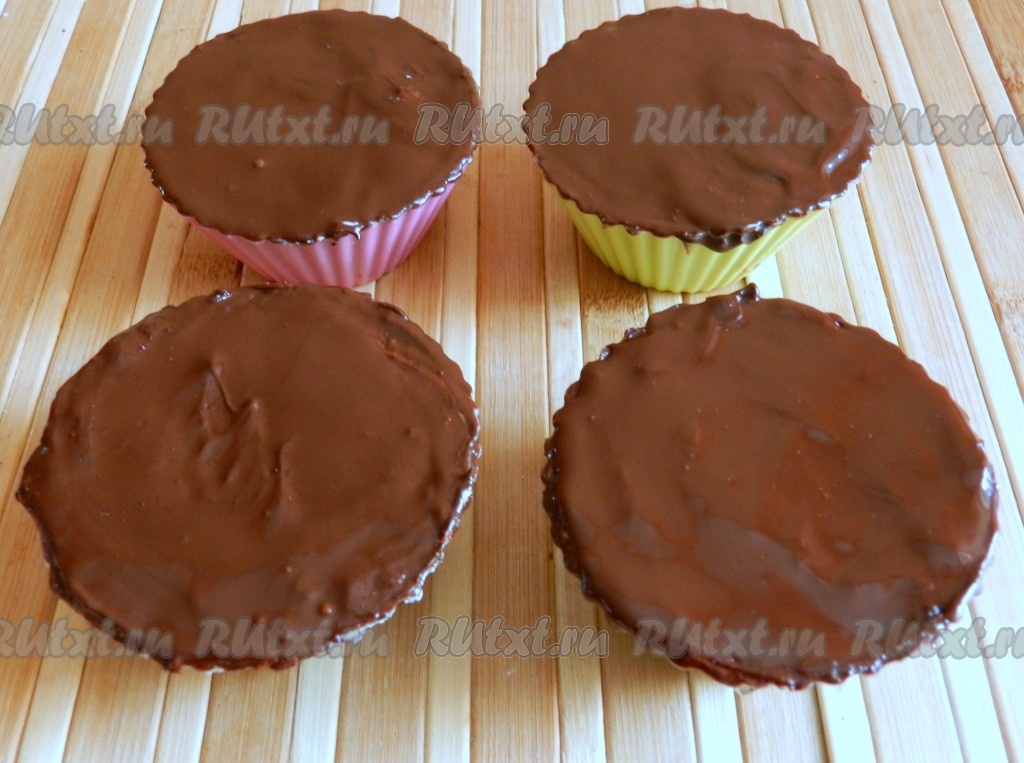Формочки с шоколадом достать из холодильника и заполнить творожной массой. При желании можно в середину положить какую-нибудь начинку.