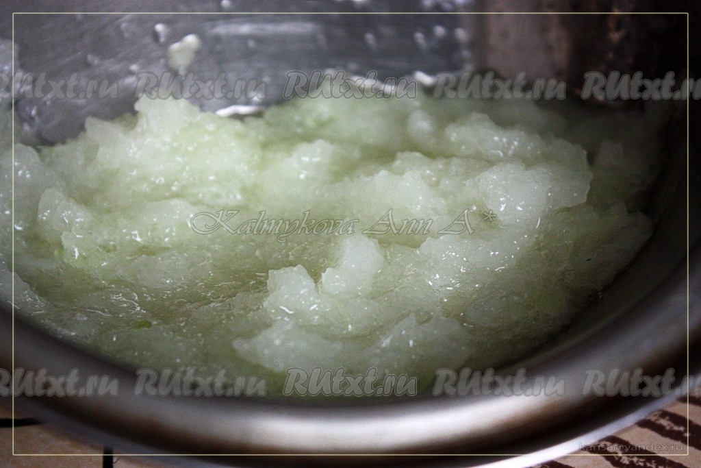 Лук чистим, трём на мелкой тёрке, сок не отжимаем.