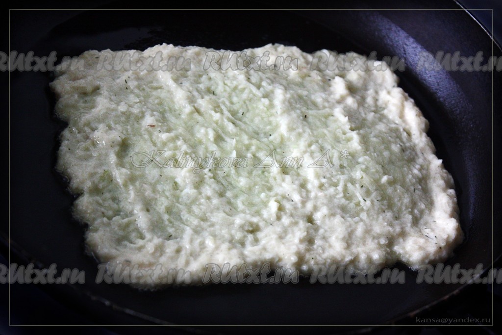 Драник с начинкой кладем швом вниз.