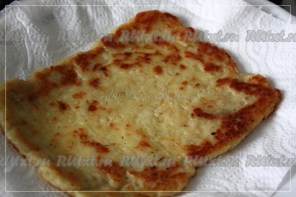 Готовые драники кладём на бумажное полотенце, чтобы убрать лишнее масло.