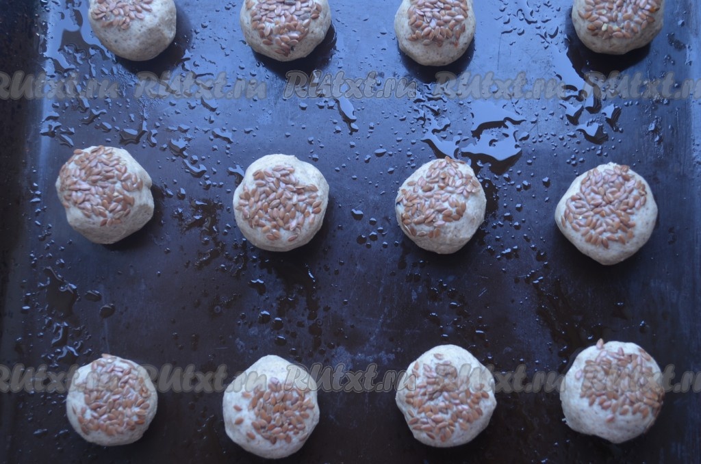 Одну сторону печенья обмакнуть в семя льна.