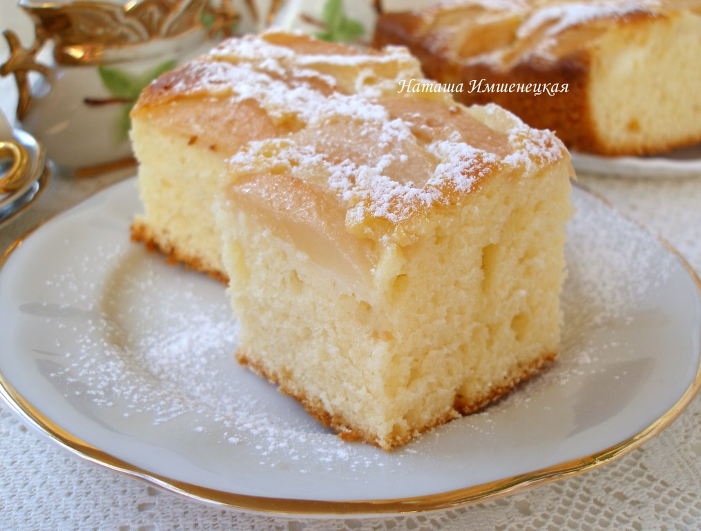 Вкусный, сочный грушевый пирог с йогуртом готов.