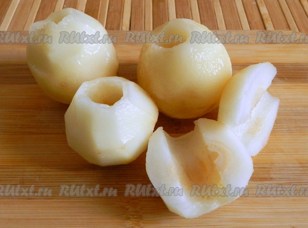 Груши очистить от кожуры и сердцевины, нарезать дольками (можно использовать целые груши и половинки).