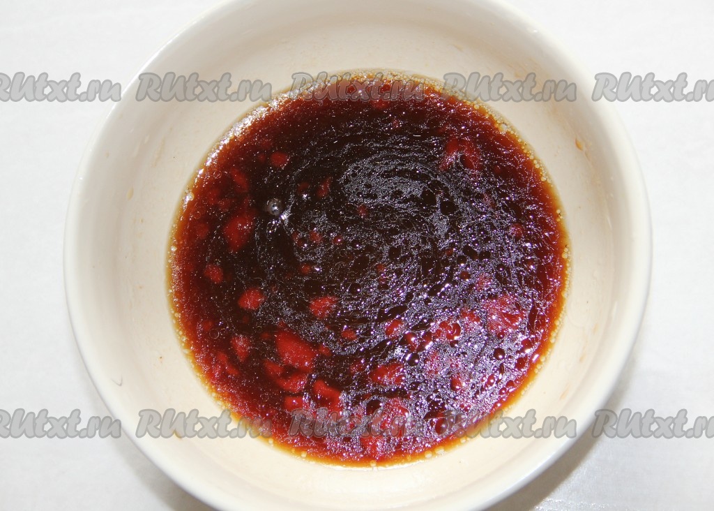 Для приготовления соуса в отдельной ёмкости соединяем соевый соус, мёд и воду, тщательно перемешиваем получившийся соево-медовый соус.