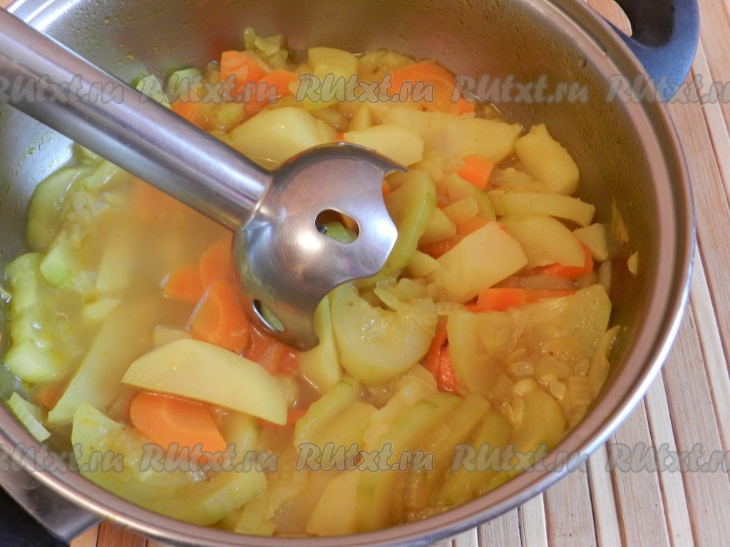 Овощной суп-пюре обладает прекрасными вкусовыми качествами, хорошо насыщает и согревает. Для его приготовления подходят любые сезонные овощи. Сегодня предлагаю приготовить суп-пюре из кабачка, моркови и лука.