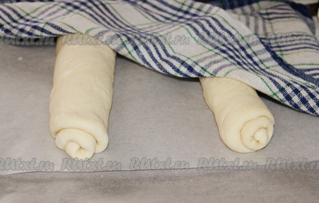 Перенести на противень и оставить на 40 минут для расстойки.