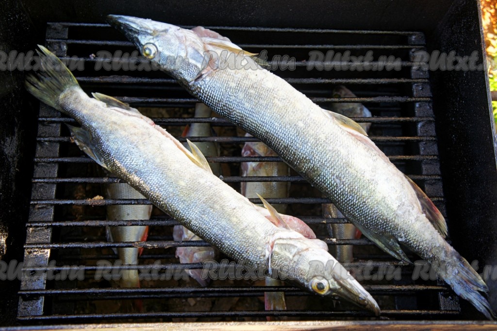 Рыбку поместить в коптильню с ольховыми опилками. У меня на нижнем ярусе коптильни разместился речной окунь, а на верхнем - небольшая щука.