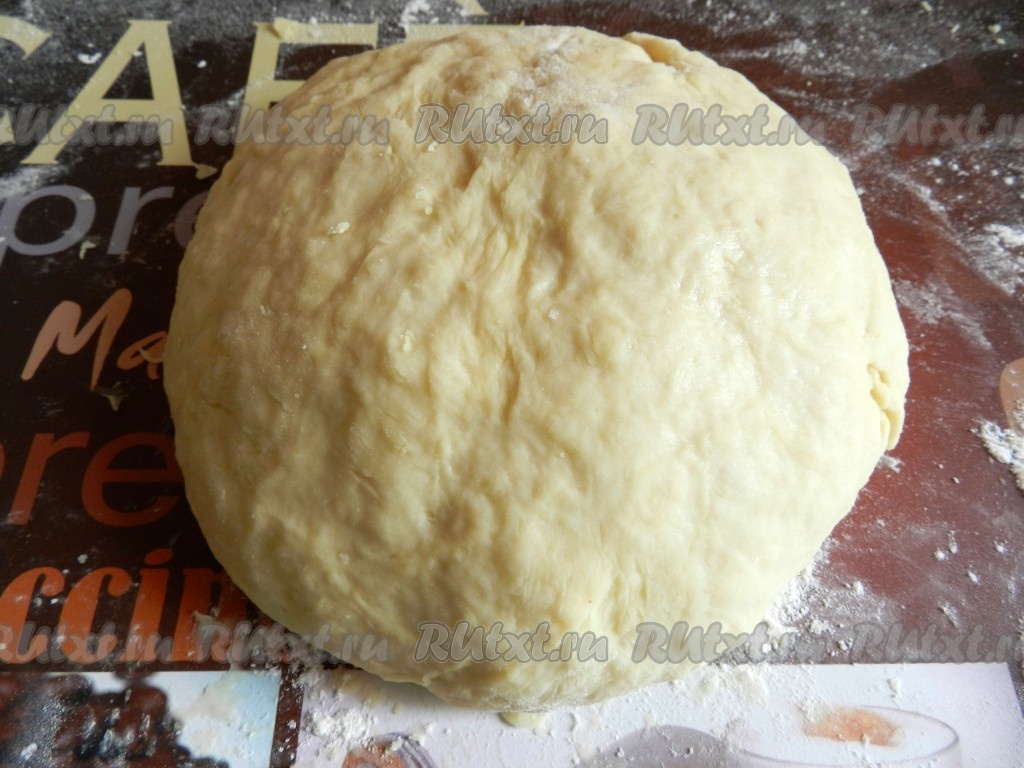 Когда тесто начнёт собираться в ком, продолжать замешивать его руками, всыпая муку по мере необходимости.