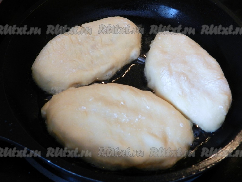 В сковороде очень хорошо разогреть растительное масло, выкладывать пирожки с картошкой швом вниз и жарить их до подрумянивания с двух сторон (примерно по 1,5-2 минуты с каждой стороны) на среднем огне.