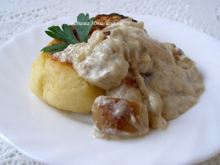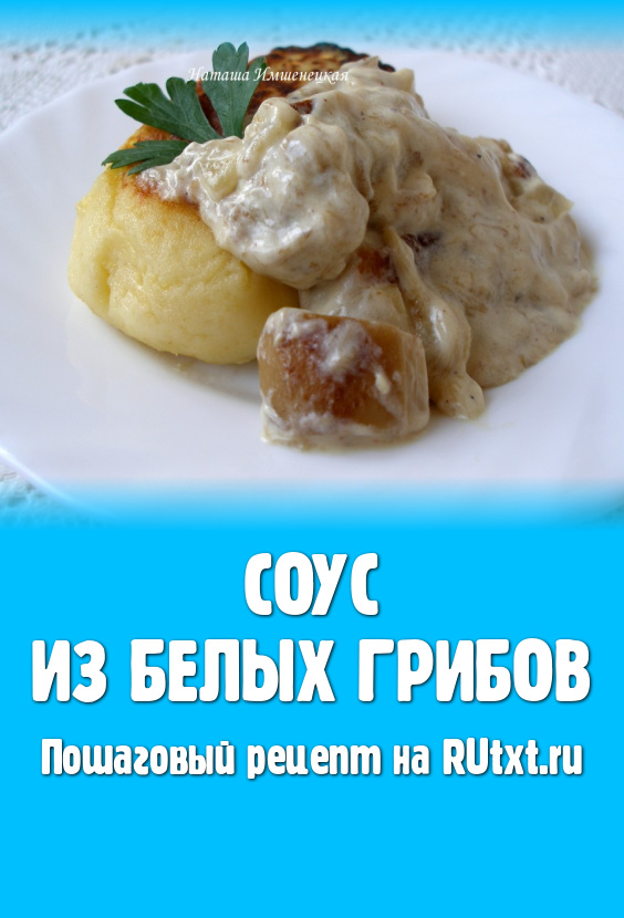 Соус из белых грибов - очень вкусный, его можно готовить на сливках или на сметане, делать более густым или наоборот. В качестве гарнира можно подать картофельные котлеты с сыром.