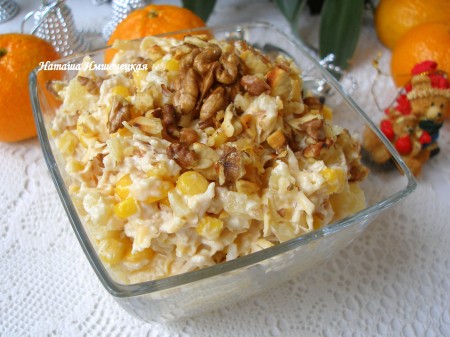 Салат с курицей, сыром и ананасом
