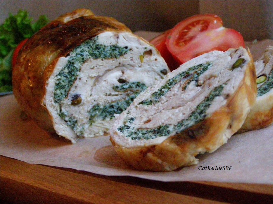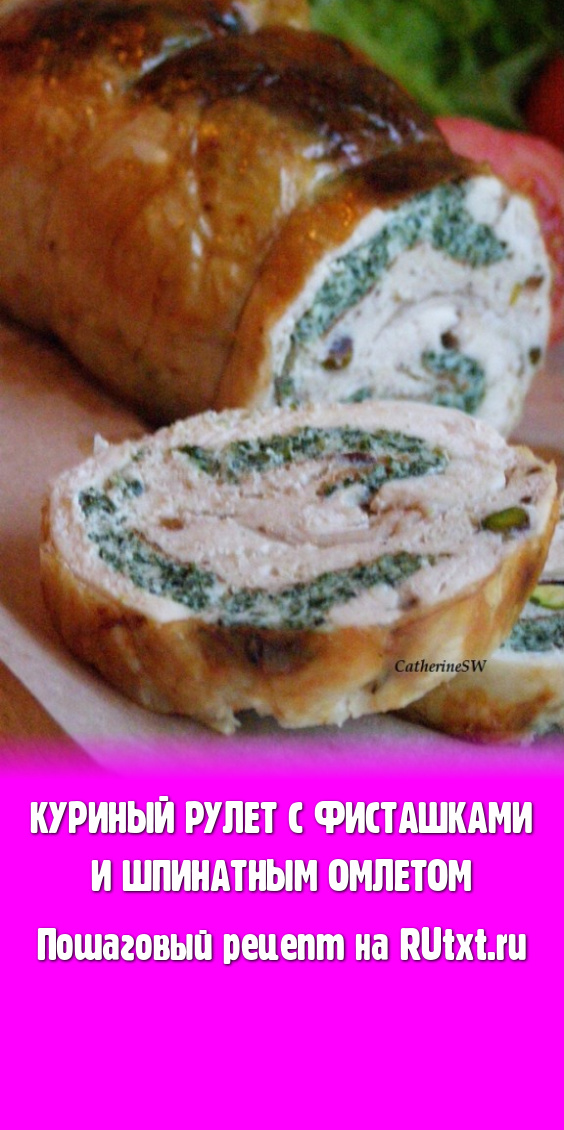 Предлагаю вашему вниманию вариант праздничного куриного рулета с фисташками и шпинатным омлетом. Эффектный и очень вкусный!
