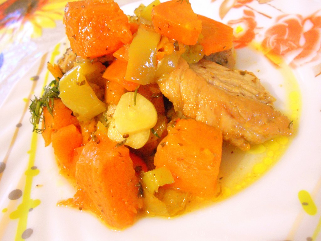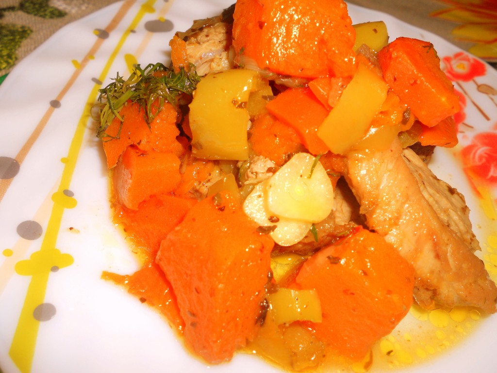 Свинина отлично сочетается с тыквой, поэтому блюдо получается очень вкусным, ароматным и сытным. Разложить мясо с овощами по тарелкам и в горячем виде подать к столу. Это аппетитное блюдо не только насытит, но и подарит хорошее настроение.