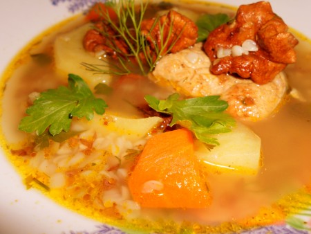 Суп с лисичками и гречкой