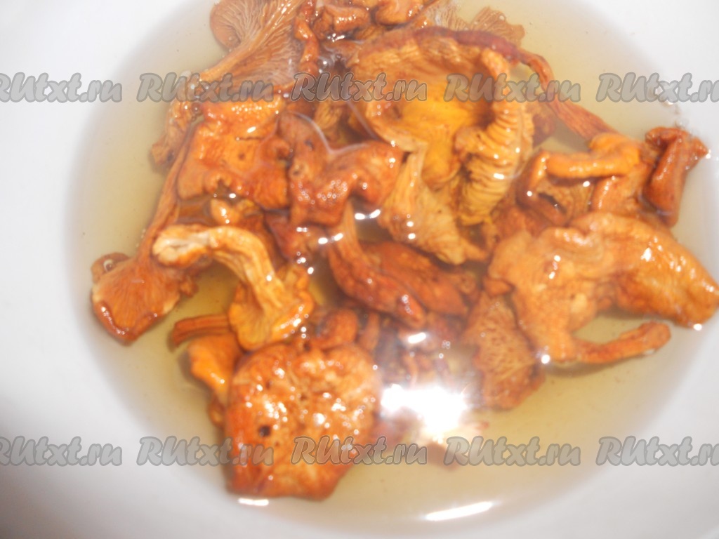 Если лисички сухие, то замочить их в горячей воде.