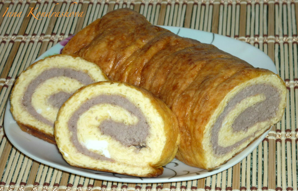 Спасибо! Вчера у сестры попробовала, сейчас готовлю сама. Корж вылила на тефлоновый коврик для выпечки,все замечательно получилось. Выпекала при 200 градусах 20 минут. Сестра дала сначала вчера рецепт, но хватит 15минут для коржа. Фарш выложила, рулет свернула, поставила печь. Попробую через 40 минут, пеку при 180 градусах. Духовки у всех разные, конечно. Но, чувствую, наш рецепт!