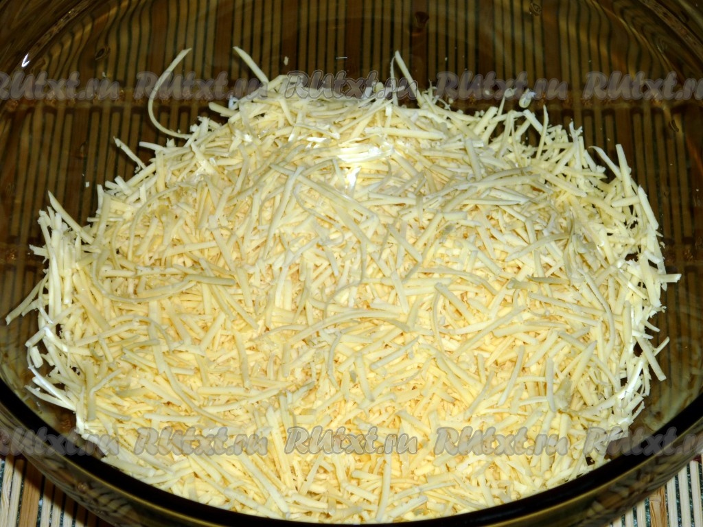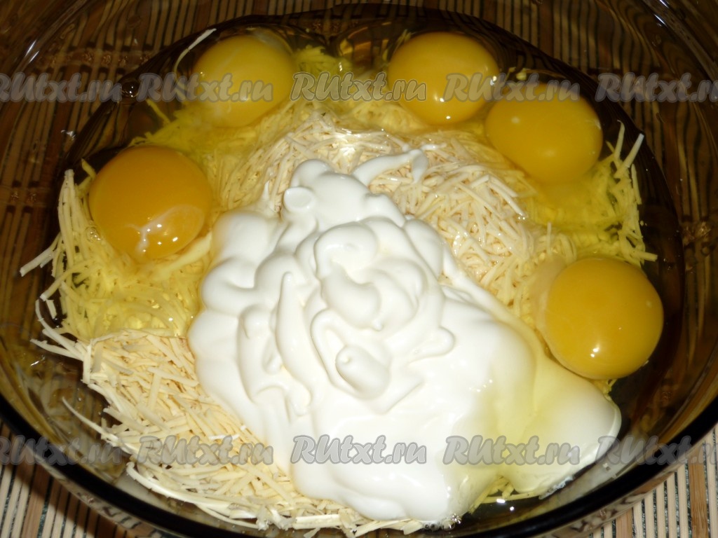 Противень поставить в разогретую духовку. Выпекать смесь минут 15, пока сыр полностью не расплавится и не покроется золотистой корочкой.